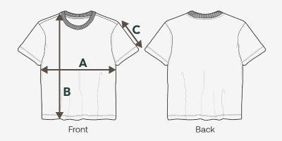 | Size | A - Half Chest | B - Body Length | C - Sleeve Length |